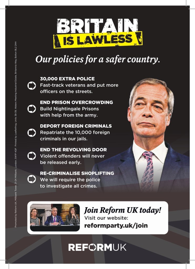 If you are in a high crime area, or one where crime is rising rapidly (sadly a fairly high probability), this pdf reproduces the “Britain is Lawless” leaflet recently distributed by Head Office,